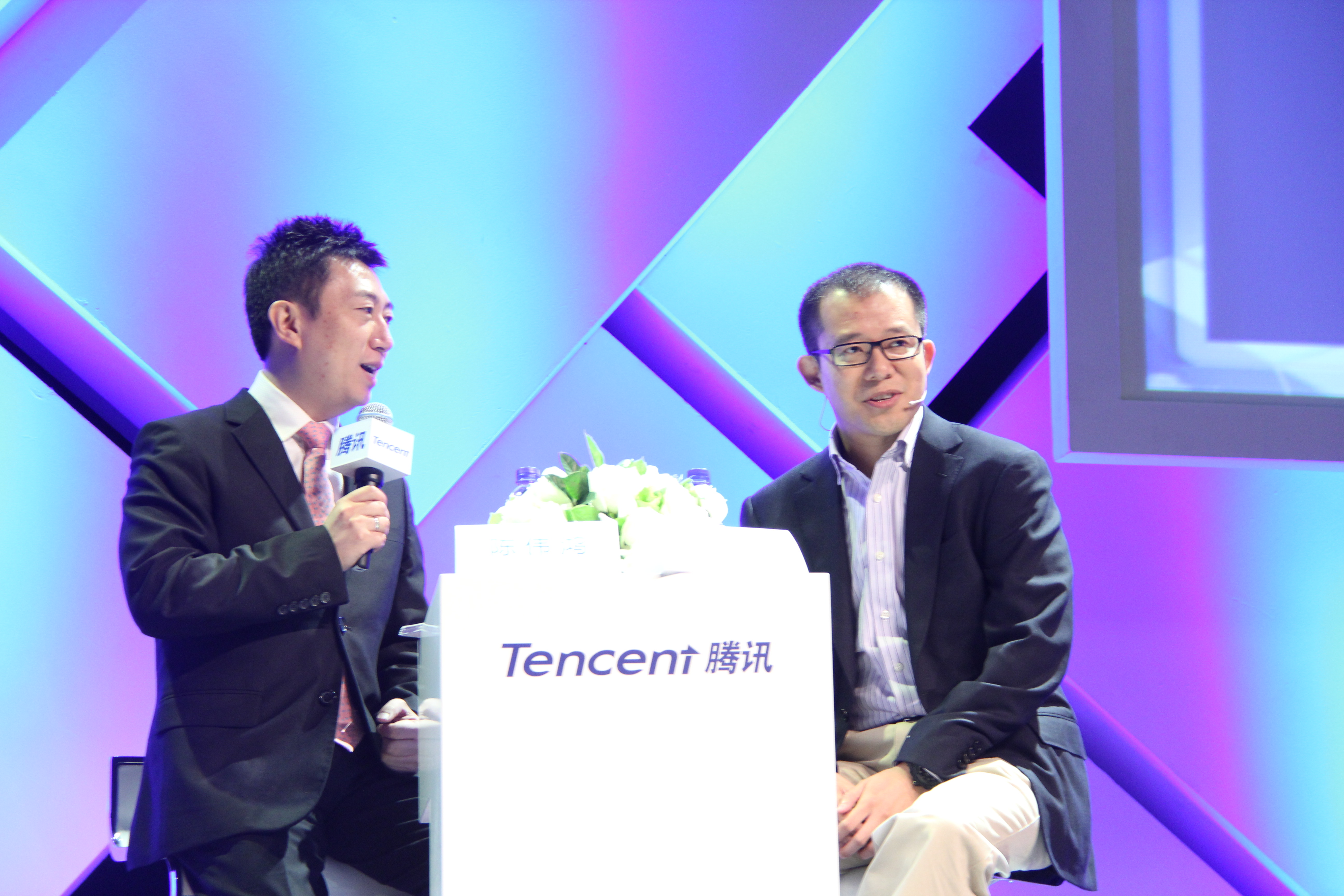(右)騰訊總裁劉熾平、(左)主持人