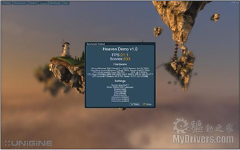 Unigine Engine引擎公司近日發(fā)布了一款DX11基準(zhǔn)性能測(cè)試DEMO―Heaven,支持DX11中的多種特效,尤其是Tessellation,此處測(cè)試選擇的就是這款次世代DEMO。