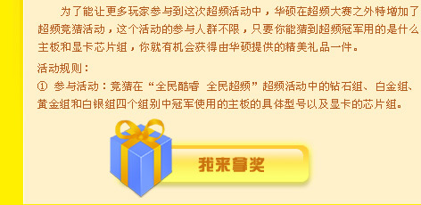 1、本次活動(dòng)設(shè)有鉆石組、白金組、黃金組和白銀 組四個(gè)組別,選手分別采用Intel i7 920、Q8 200、E5200和E2140處理器,配合華碩主板進(jìn)行 超頻。超頻環(huán)境不限。 2、參賽者通過華碩超頻比賽專題頁(yè)面,按照統(tǒng)一的格式上傳成績(jī)截圖(需采用大賽提供的圖片作為桌面背景)進(jìn)行參賽。 3、截圖格式如圖所示.玩家需使用CPU-Z軟件來(lái)表示主頻,該軟件可在專題頁(yè)面上下載...
