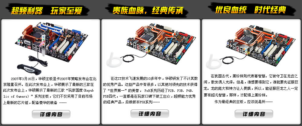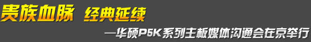 2007年8月2日,世界頂級(jí)IT廠商華碩在北京中關(guān)村慧聰書(shū)院舉辦“貴族血脈,經(jīng)典延續(xù)—華碩P5K系列主板媒體溝通會(huì)”,在本次活動(dòng)中,華碩展示了最新的P5K系列主板:包括:玩家國(guó)度系列和18周年紀(jì)念版黑珍珠系列,它們不僅采用了目前市場(chǎng)上最新的芯片組,配備豪華的裝備,并且擁有華碩獨(dú)有的各種特色功能,完全可以滿足頂級(jí)電腦發(fā)燒友和數(shù)字娛樂(lè)用戶的所有需求。